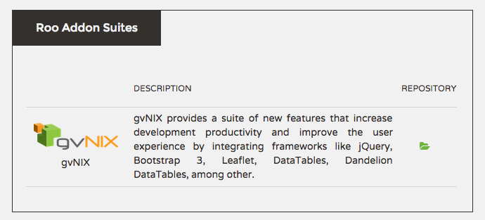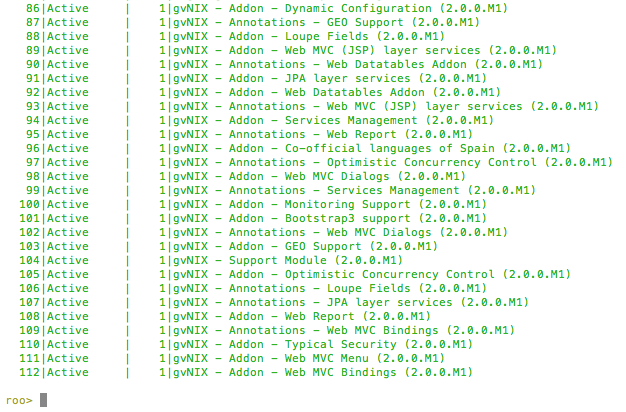 roo> addon suite list --repository http://repository.gvnix.org/index.xml