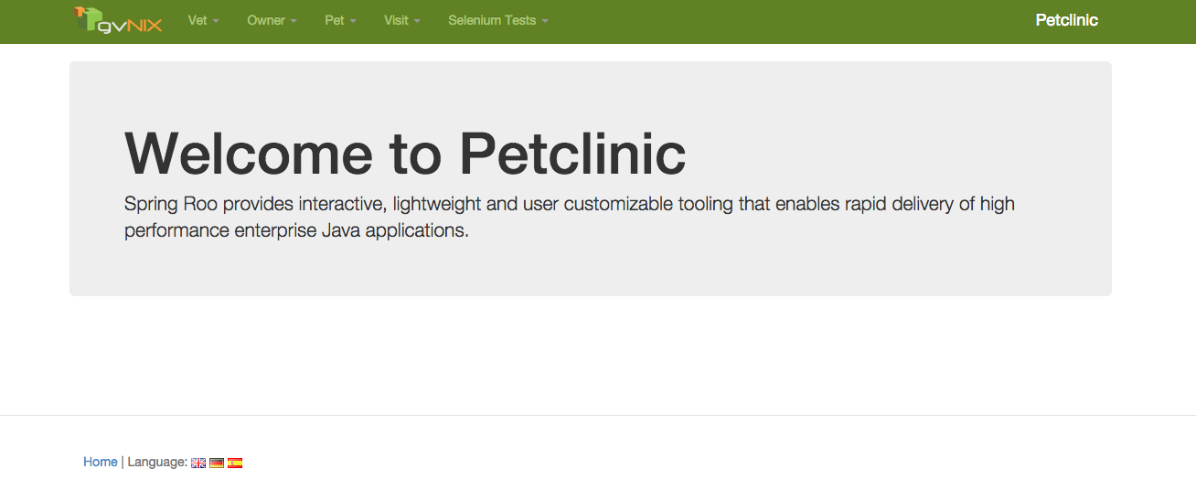 If you follow the steps above, you will have a basic petclinic application with Bootstrap appearance on http://localhost:8080/petclinic: